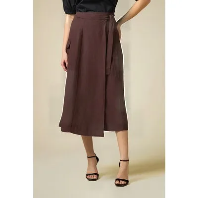 Oltre Wraparound Linen Blend Skirt Brown