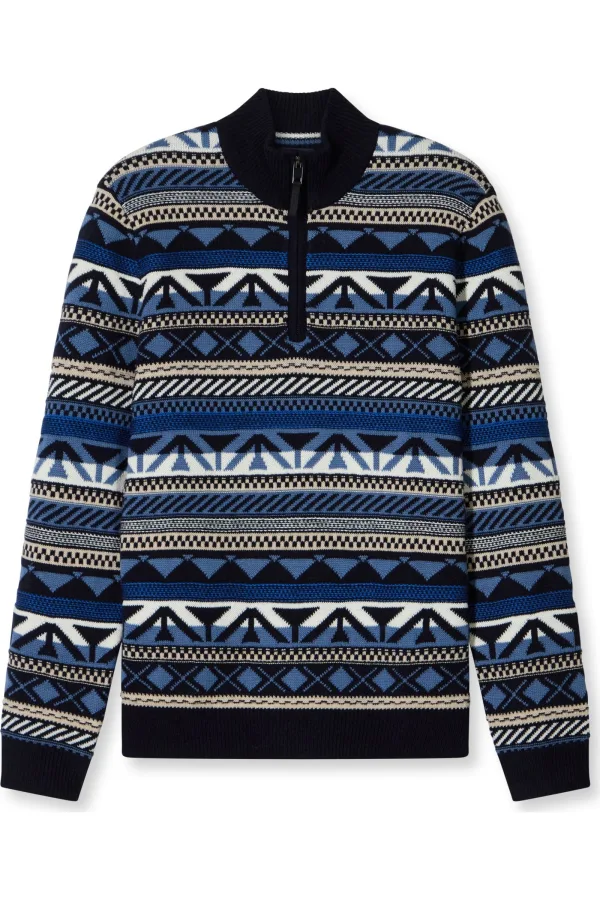 OLYMP Casual Gebreide trui ritssluiting marine, Jacquard Prijzen