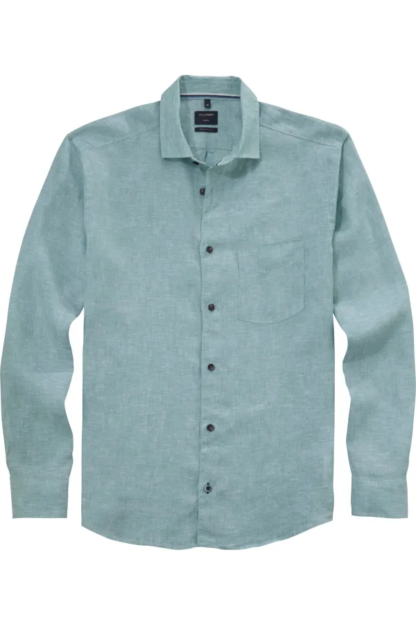 OLYMP Casual Linnen Overhemd groen, Effen Prijzen