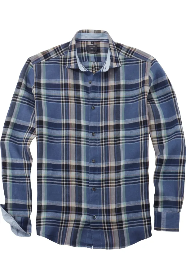 OLYMP Casual Linnen Overhemd marine, Ruit Prijzen