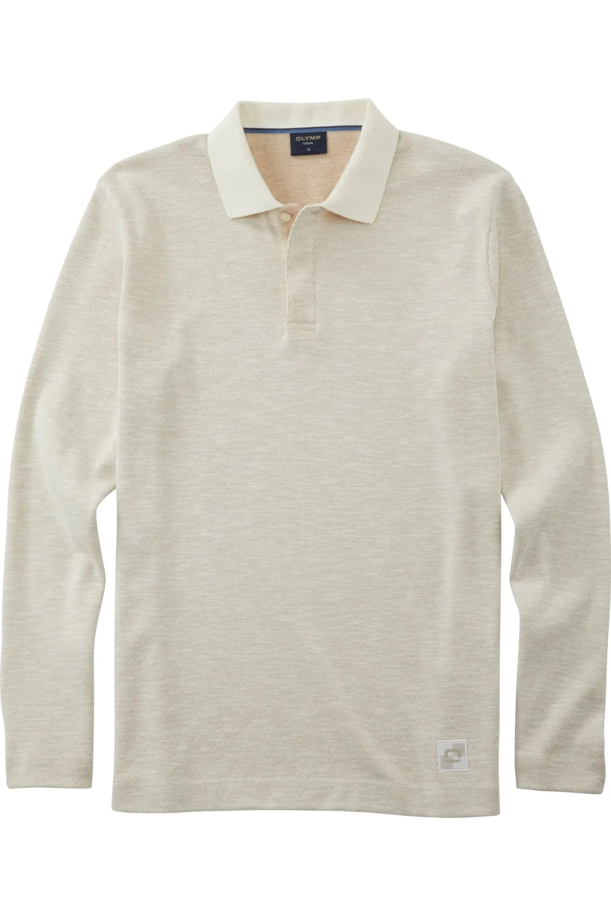 OLYMP Casual Poloshirt lange mouw ecru, Gestructureerd