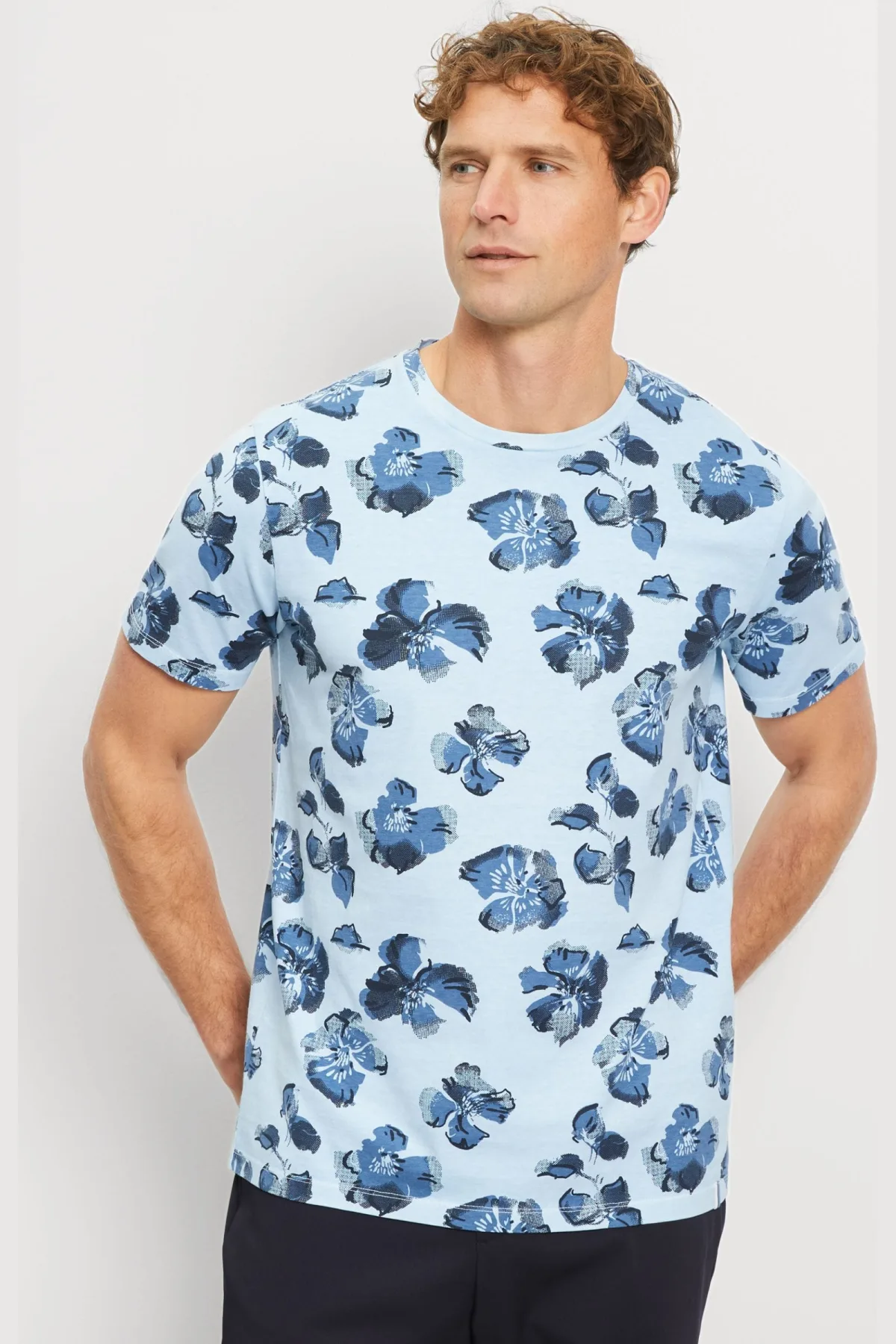 OLYMP Casual T-Shirt blauw, Bloemen Prijzen