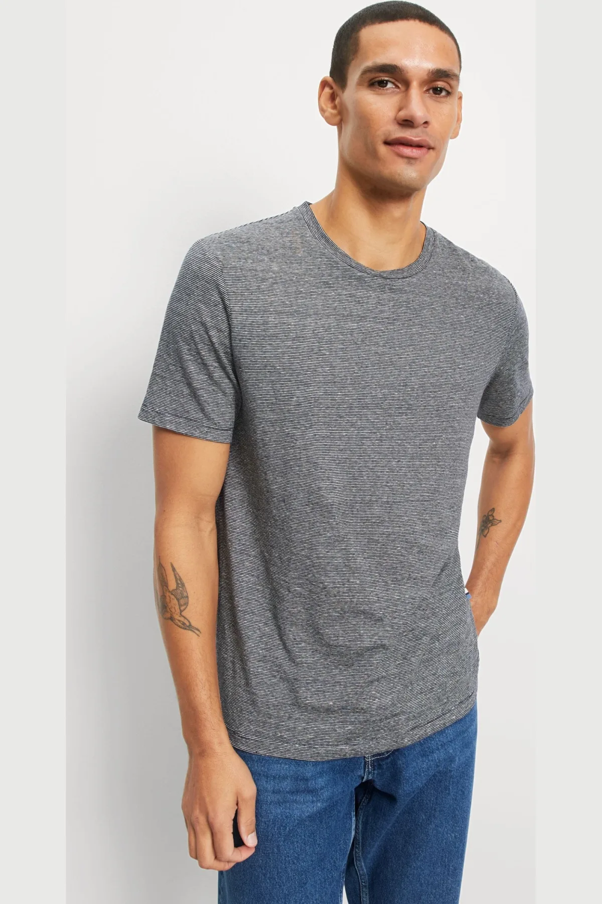 Korte mouw, 95% linnen / 5% elastaan, ronde hals, Zonder borstzak, 30 graden