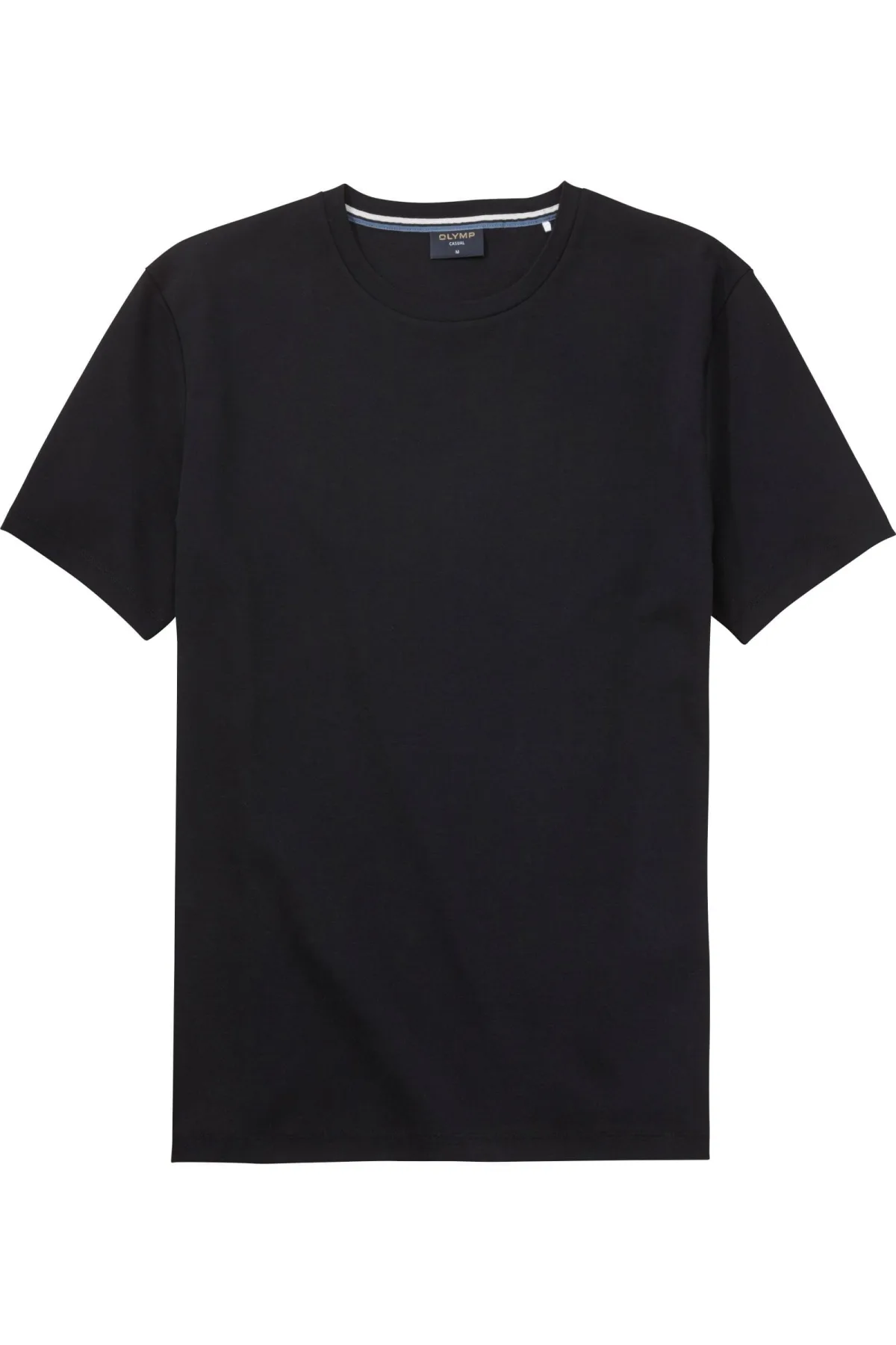 OLYMP Casual T-Shirt ronde hals zwart, Effen