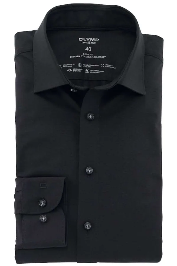 - Bij bol.com kun je OLYMP Level 5 24/Seven body fit overhemd - zwart tricot - Strijkvriendelijk - Boord kopen voor slechts €67,60 , dat is 16% goedkoper dan bij Suitableshop (€80,95).