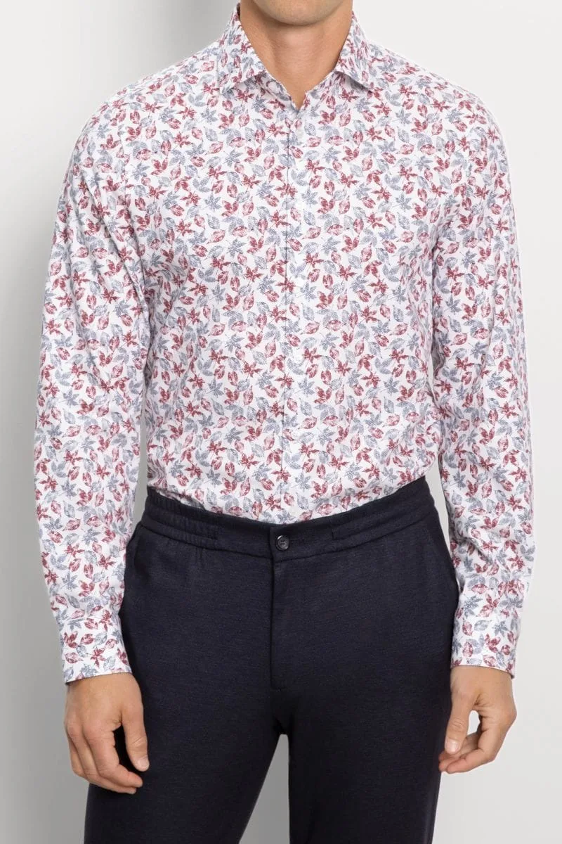 OLYMP Level Five 24/Seven Body Fit Overhemd donkerrood, Motief Prijzen