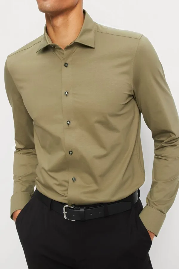OLYMP 247 Level 5 body fit overhemd tricot grijsgroen Strijkvriendelijk...