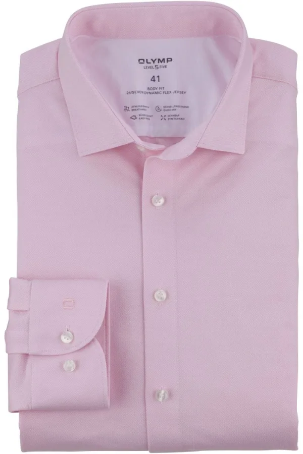 - Bij Overhemden.com kun je OLYMP Level Five 24/Seven Jersey shirt roos, Faux-uni kopen voor slechts €94,95 , dat is 5% goedkoper dan bij Bol (€99,95).