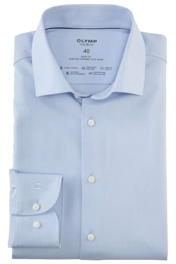 OLYMP Level Five 24/Seven Dynamic Flex Body Fit Overhemd blauw, Effen Prijzen