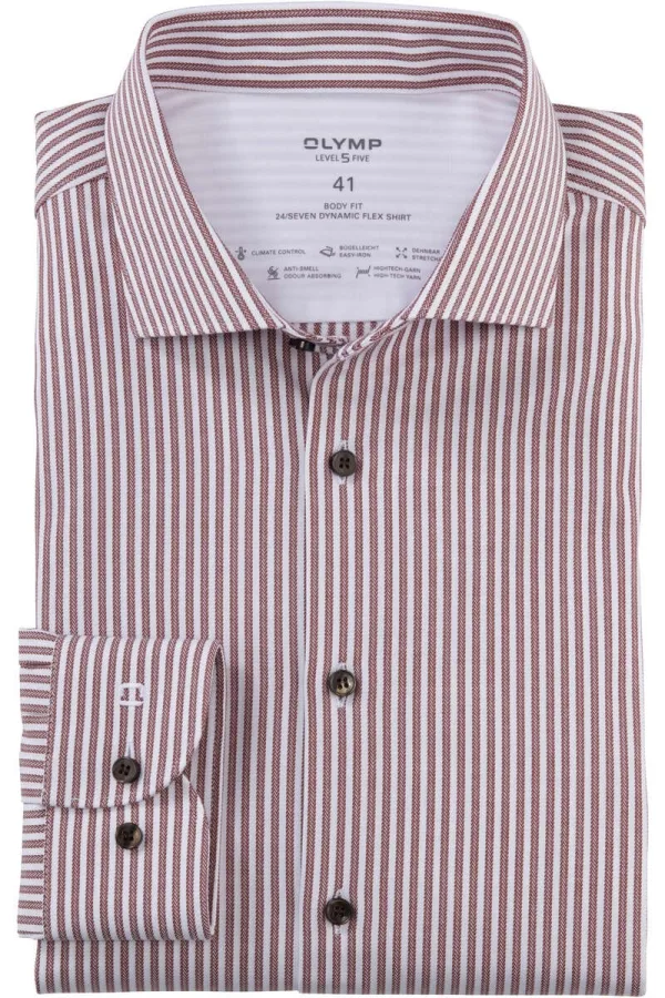 - Bij Overhemden.com kun je OLYMP Level Five 24/Seven Dynamic Flex Body Fit Overhemd rood/wit, Gestreept kopen voor slechts €38,95