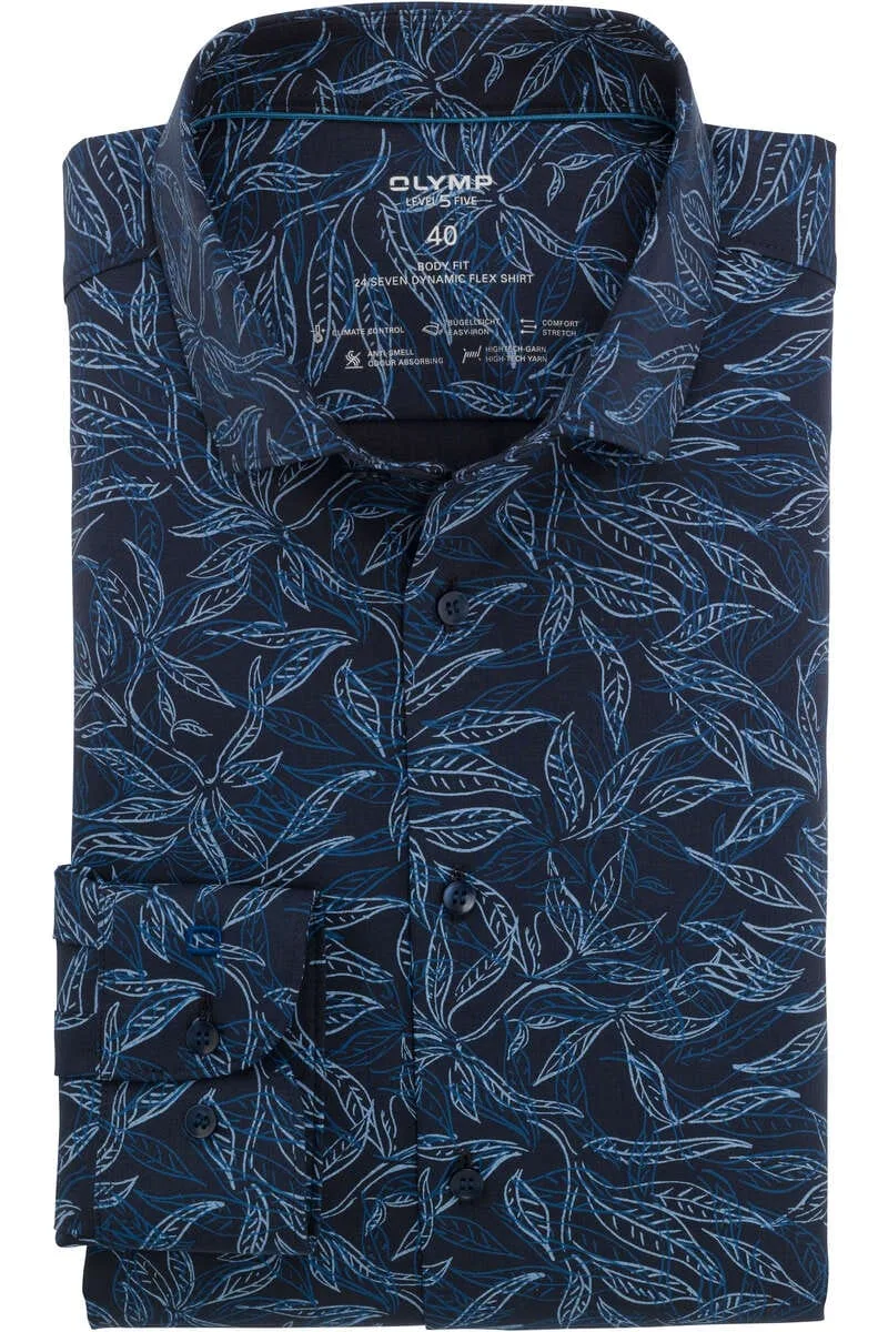 OLYMP Level Five 24/Seven Dynamic Flex Overhemd marine, Motief