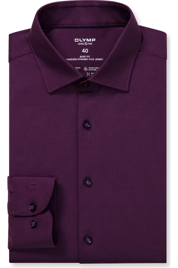 - Bij Overhemden.com kun je OLYMP Level Five 24/Seven Jersey shirt aubergine, Effen kopen voor slechts €78,95