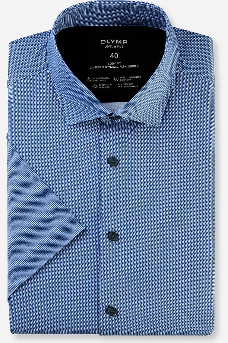 - Bij Overhemden.com kun je OLYMP Level Five 24/Seven Jersey shirt blauw, Bedrukt kopen voor slechts €99,95