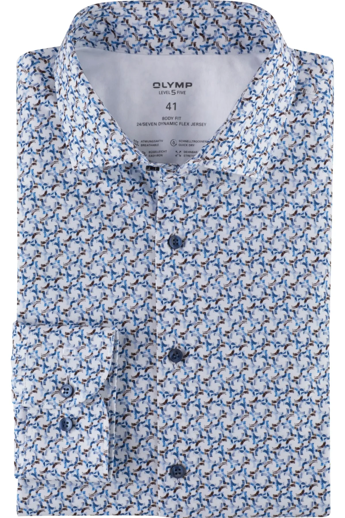 - Bij Overhemden.com kun je OLYMP Level Five 24/Seven Jersey shirt blauw, Bedrukt kopen voor slechts €88,95