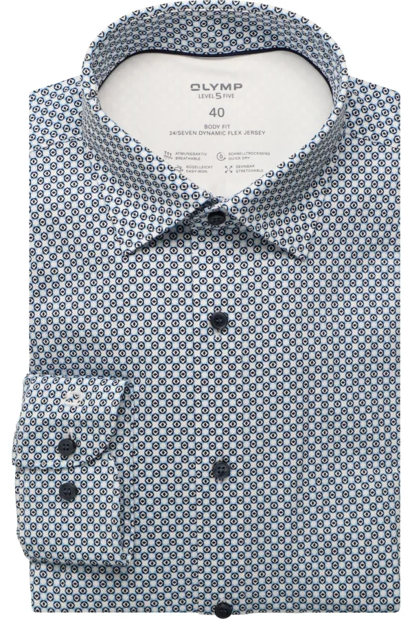 - Bij Overhemden.com kun je OLYMP Level Five 24/Seven Jersey shirt blauw, Bedrukt kopen voor slechts €99,95