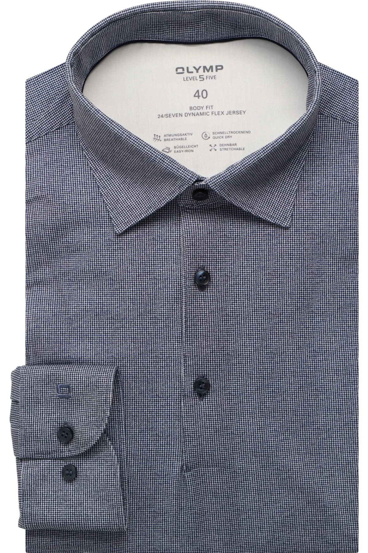 - Bij Overhemden.com kun je OLYMP Level Five 24/Seven Jersey shirt blauw, Bedrukt kopen voor slechts €88,95