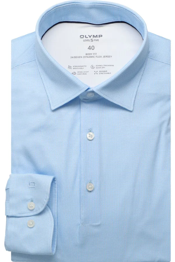 - Bij Overhemden.com kun je OLYMP Level Five 24/Seven Jersey shirt blauw, Bedrukt kopen voor slechts €99,95