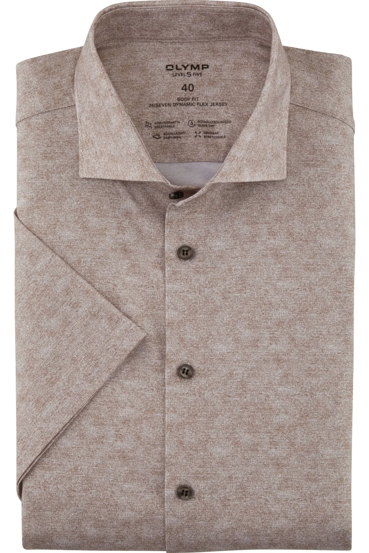- Bij Overhemden.com kun je OLYMP Level Five 24/Seven Jersey shirt bruin, Bedrukt kopen voor slechts €94,95