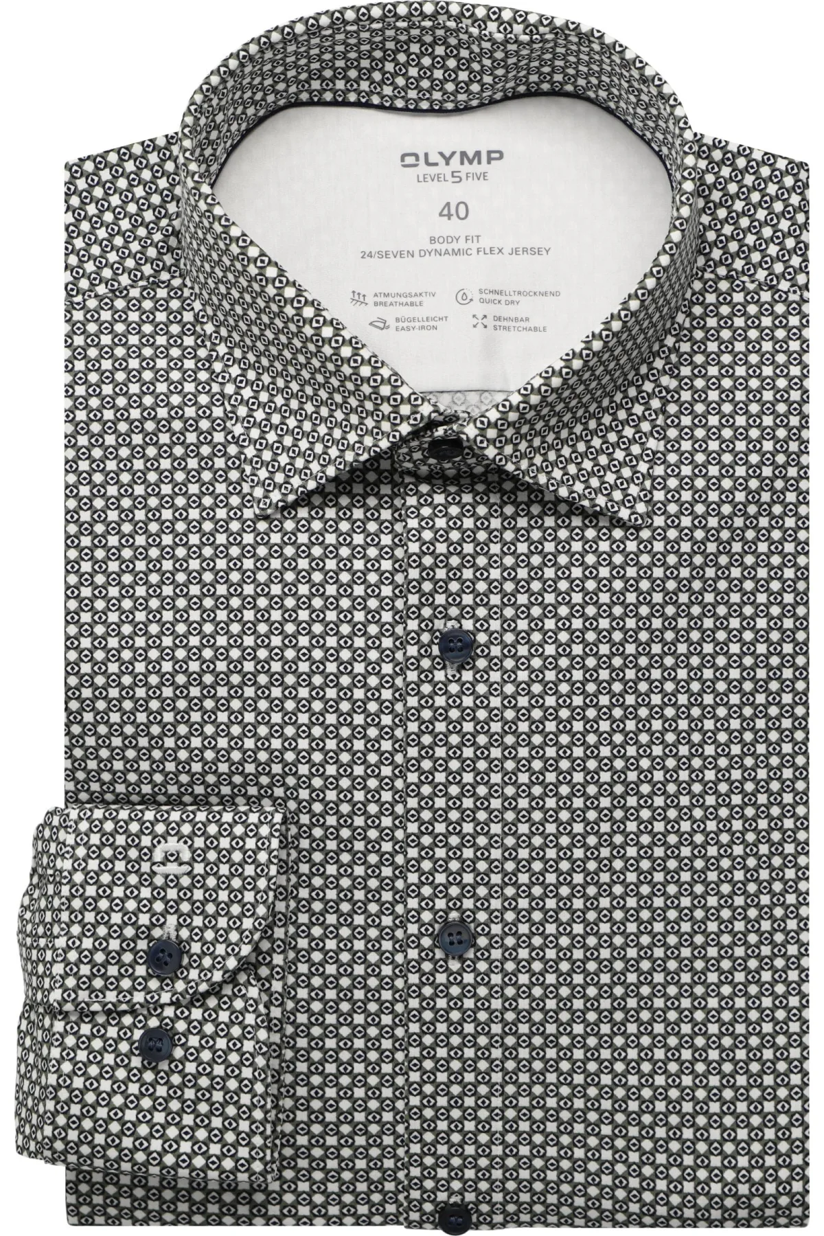 - Bij Overhemden.com kun je OLYMP Level Five 24/Seven Jersey shirt grijs-groen, Bedrukt kopen voor slechts €99,95