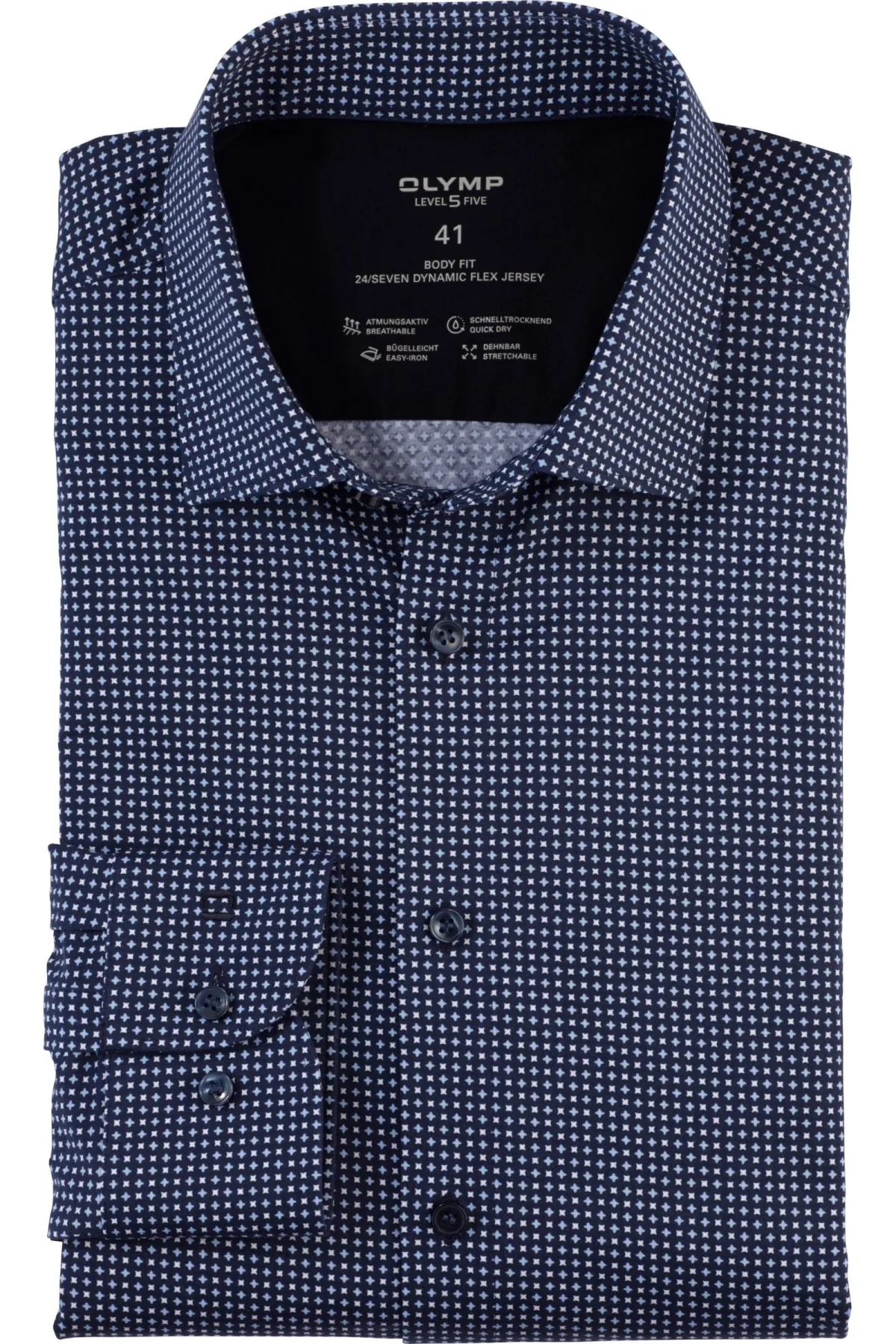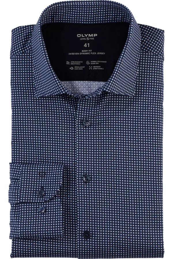 - Bij Overhemden.com kun je OLYMP Level Five 24/Seven Jersey shirt marine, Bedrukt kopen voor slechts €88,95