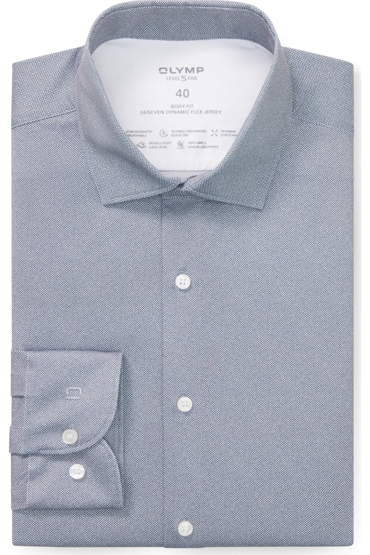 Lange mouw (normaal), 86% polyamide / 14% elastaan, Modern Kent kraag Enkel manchet, Zonder borstzak, sneldrogend, 30 graden