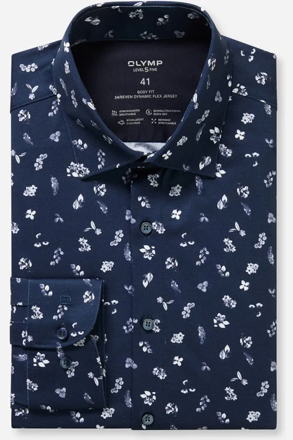- Bij Overhemden.com kun je OLYMP Level Five 24/Seven Jersey shirt marine, Bedrukt kopen voor slechts €88,95