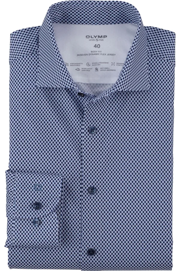 - Bij Overhemden.com kun je OLYMP Level Five 24/Seven Jersey shirt marine, Bedrukt kopen voor slechts €94,95