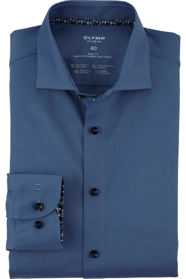 Specificaties: OLYMP Level Five 24/Seven Jersey shirt Neurenberg blauw, Effen