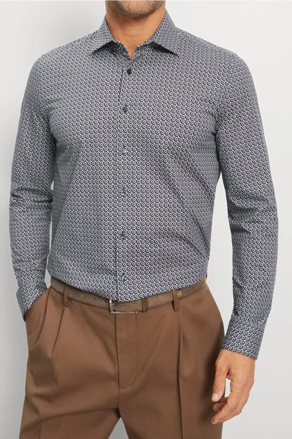 Lange mouw (normaal), 92% Katoen / 8% Elastaan, Modern Kentkraag Enkel manchet, Zonder borstzak, sneldrogend, 30 graden