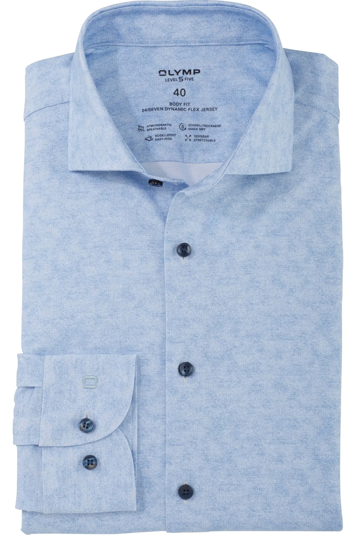 - Bij Overhemden.com kun je OLYMP Level Five 24/Seven Jersey shirt rook blauw, Bedrukt kopen voor slechts €88,95