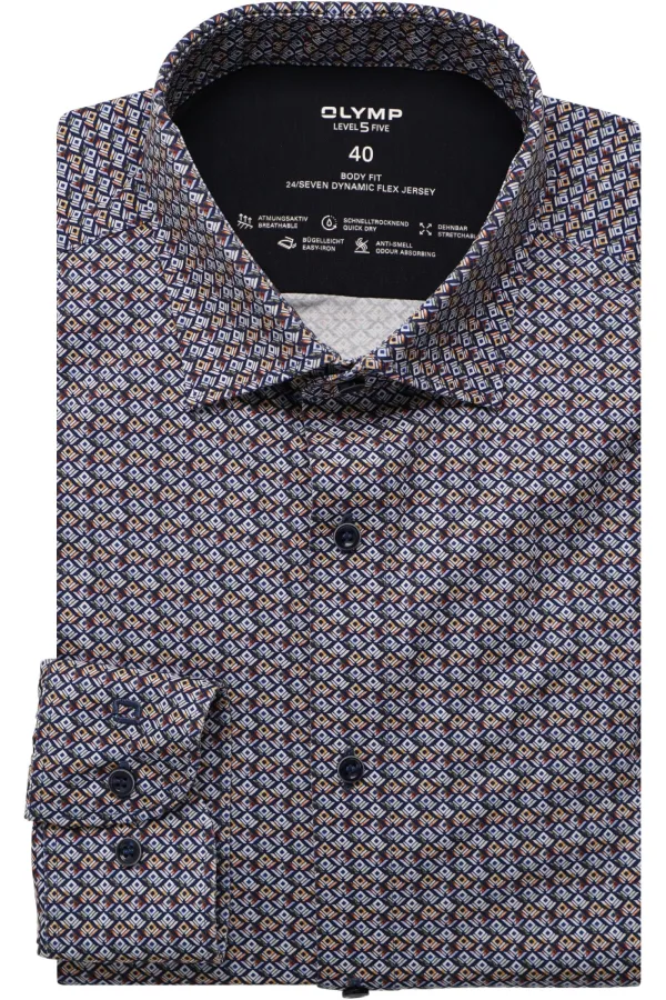 - Bij Overhemden.com kun je OLYMP Level Five 24/Seven Jersey shirt sienna, Motief kopen voor slechts €43,95