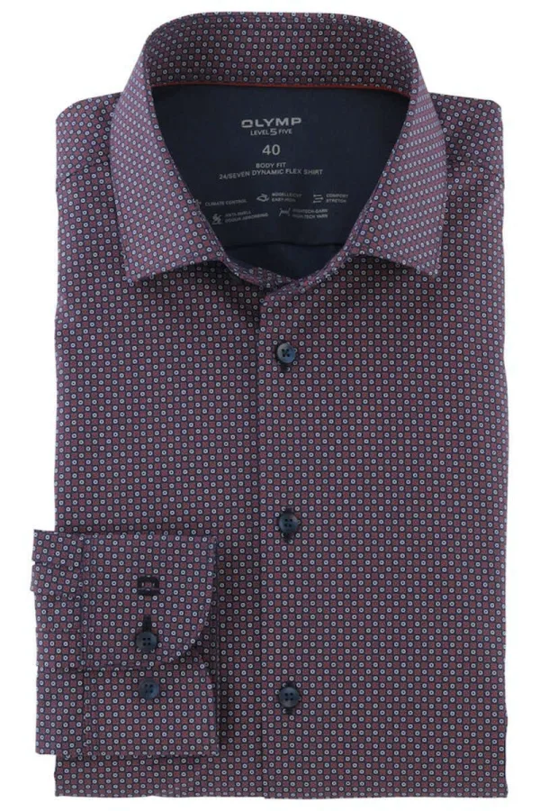 OLYMP Level Five 24/Seven Overhemd blauw/rood, Motief Prijzen