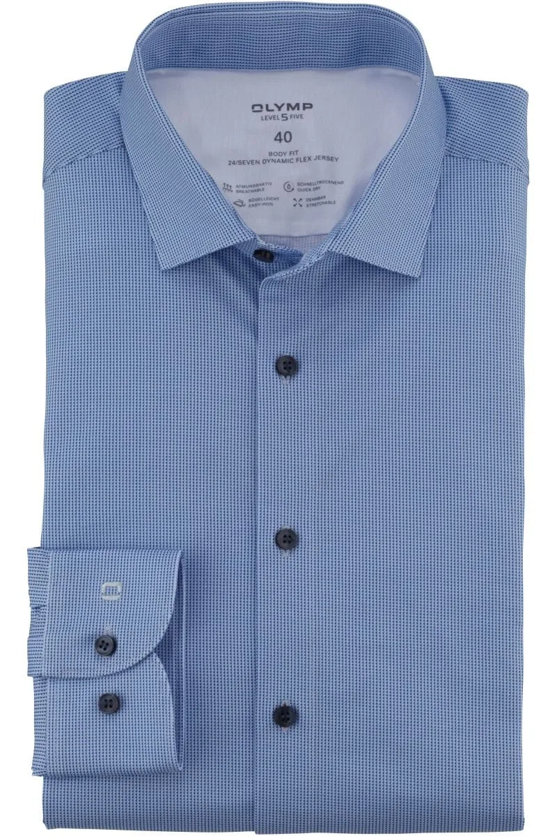 - Bij bol.com kun je OLYMP 24/7 Level 5 body fit overhemd - mouwlengte 7 - mouwlengte 7 - tricot - lichtblauw dessin - Strijkvriendelijk - Boord kopen voor slechts €79,89