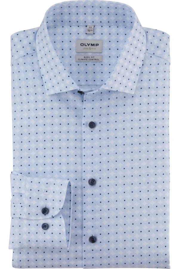 - Bij bol.com kun je OLYMP 247 Level 5 body fit overhemd mouwlengte 7 mouwlengte 7 dobby lichtblauw dessin Strijkvriendelijk Boord kopen voor slechts €89,95