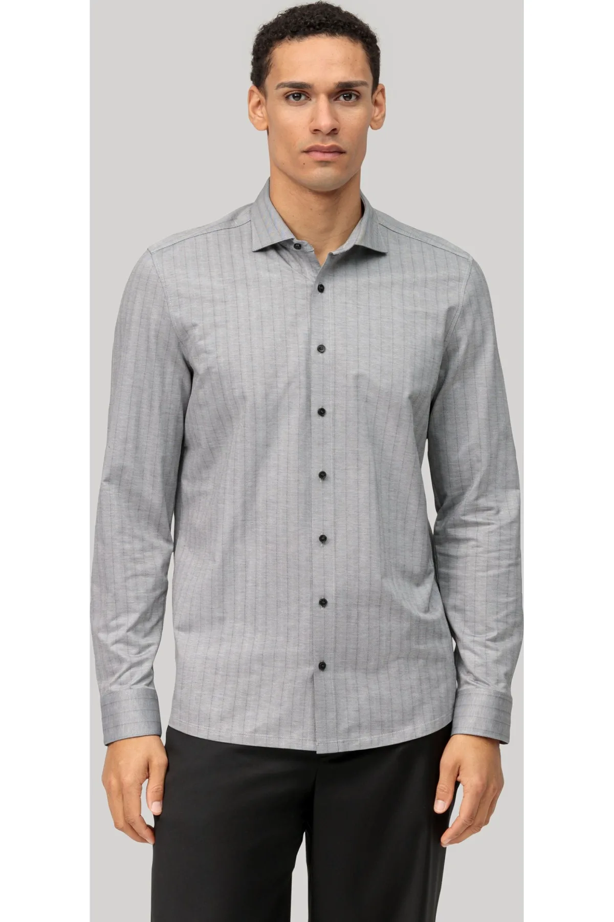 OLYMP Level Five 24/Seven Overhemd zwart, Herringbone