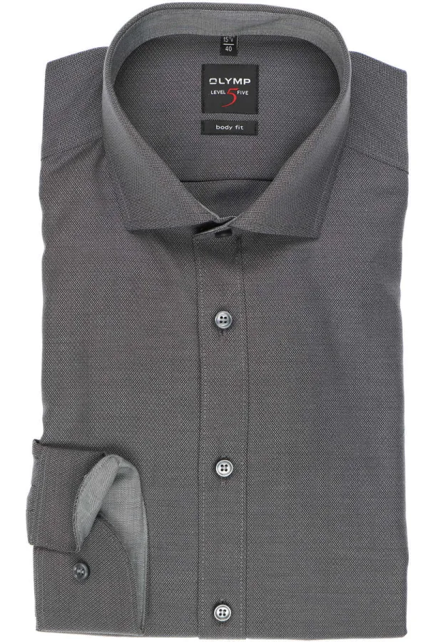 - Bij bol.com kun je OLYMP Level 5 body fit overhemd antraciet grijs structuur contrast Strijkvriendelijk Boord kopen voor slechts €75,10 , dat is 6% goedkoper dan bij Overhemden.com (€79,95).