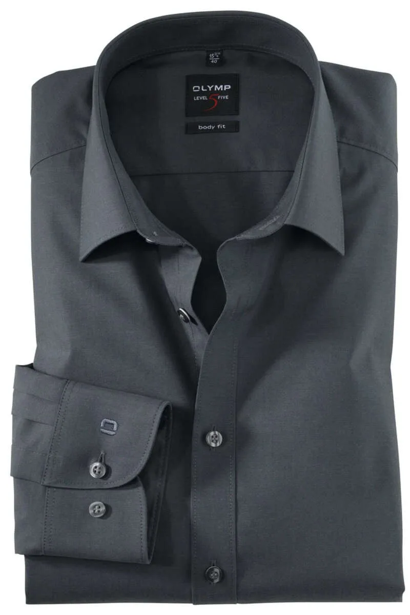 OLYMP Level Five Body Fit Overhemd antraciet, Effen Prijzen