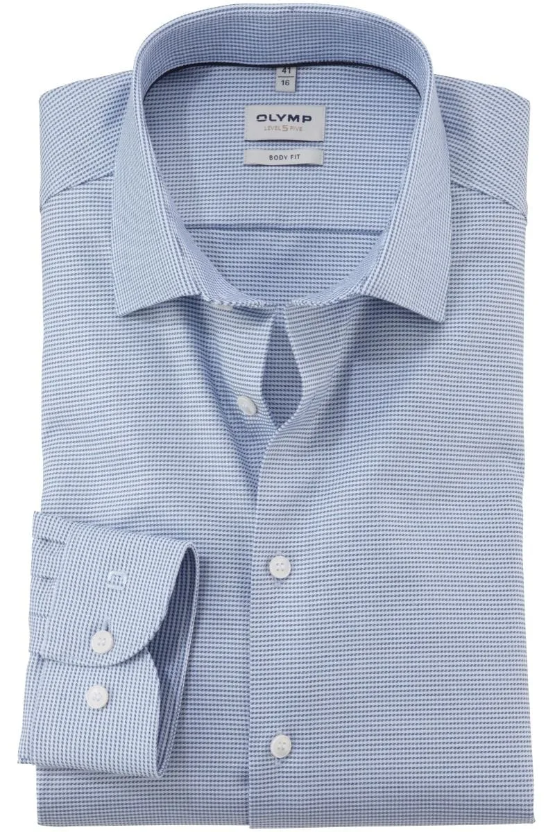 - Bij bol.com kun je OLYMP Level 5 body fit overhemd - structuur - lichtblauw - Strijkvriendelijk - Boord kopen voor slechts €68,90 , dat is 14% goedkoper dan bij Overhemden.com (€79,95).