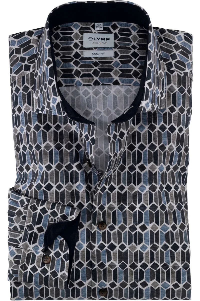 OLYMP Level Five Body Fit Overhemd bruin/blauw, Motief Prijzen