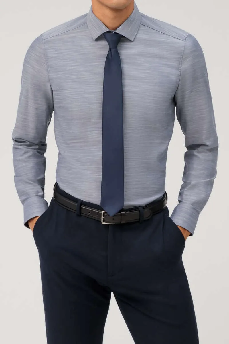 Lange mouw (normaal), 97% katoen / 3% elastolefine, Modern Kent kraag Kantoor manchet, Structuur, Zonder borstzak, patch in kraag, 40 graden