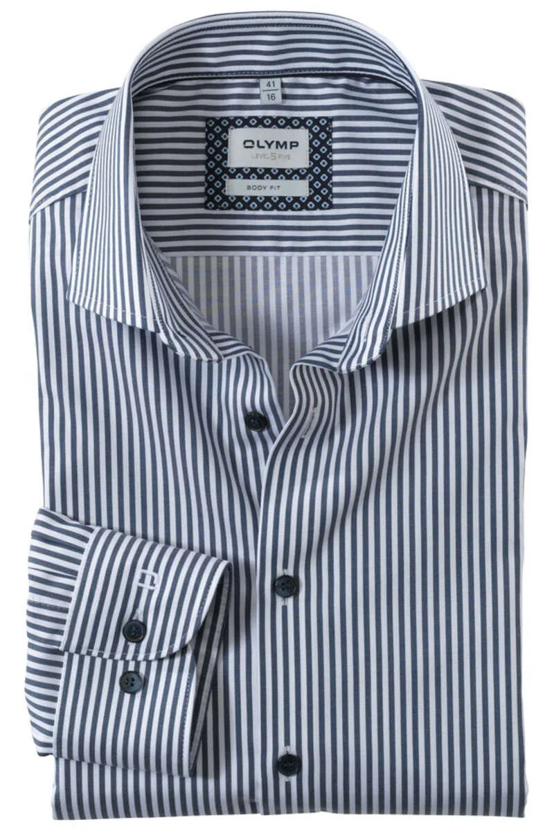 OLYMP Level Five Body Fit Overhemd marine/wit, Gestreept