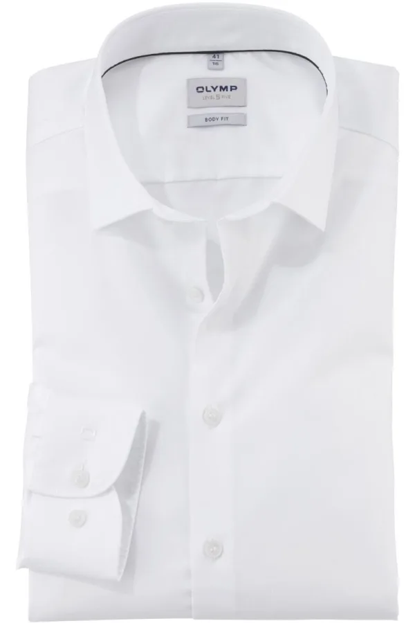 OLYMP Level 5 body fit overhemd satijnbinding wit Strijkvriendelijk Boord
