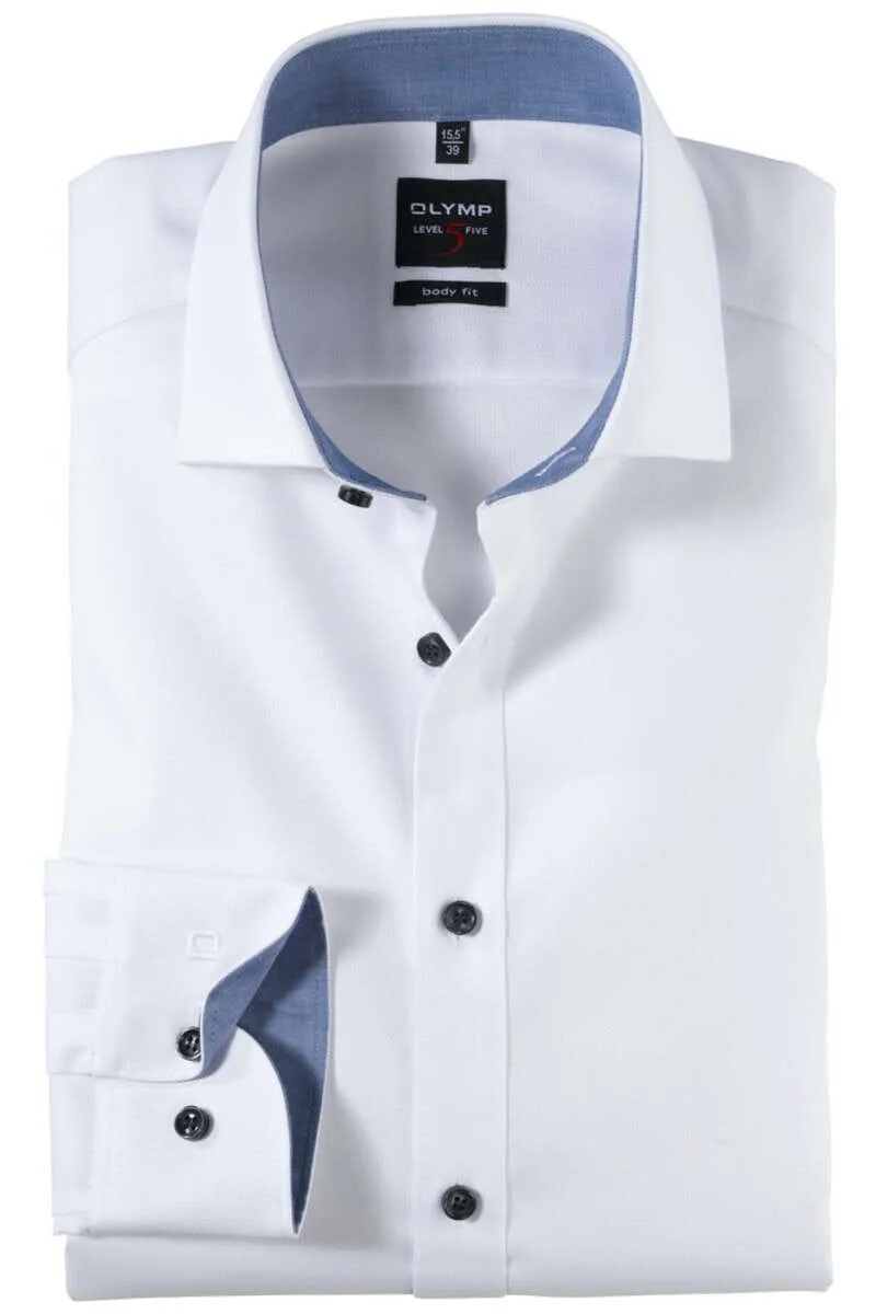 OLYMP Level Five Body Fit Overhemd wit, Effen