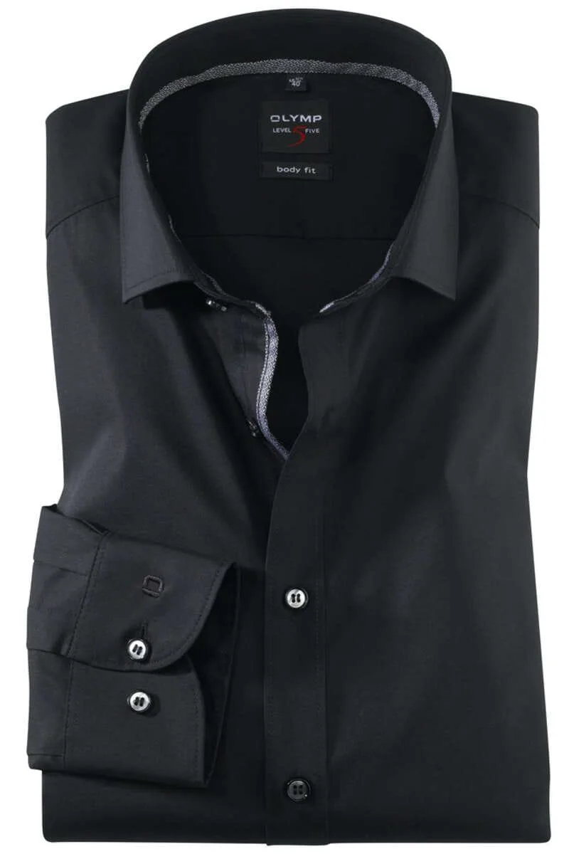 OLYMP Level Five Body Fit Overhemd zwart, Effen