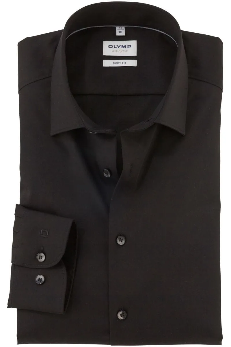 OLYMP Level Five Body Fit Overhemd zwart, Effen