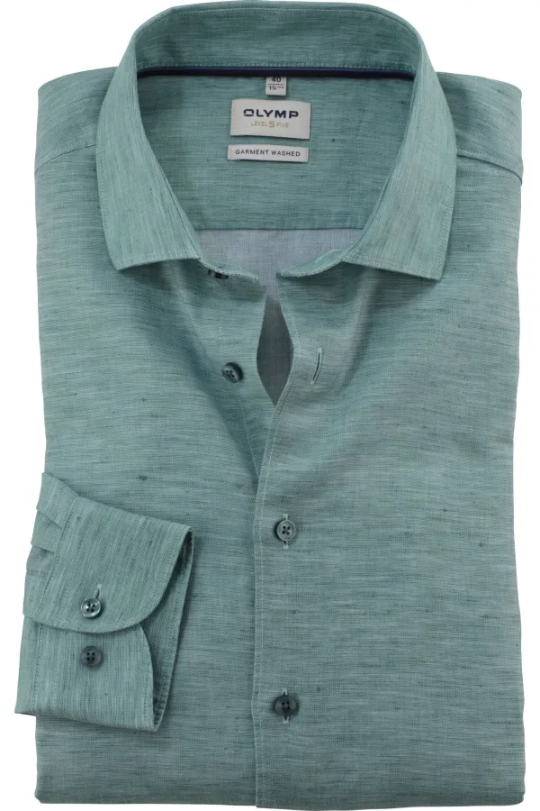 - Bij Overhemden.com kun je OLYMP Level Five Garment Washed Linnen Overhemd groen, Effen kopen voor slechts €84,95