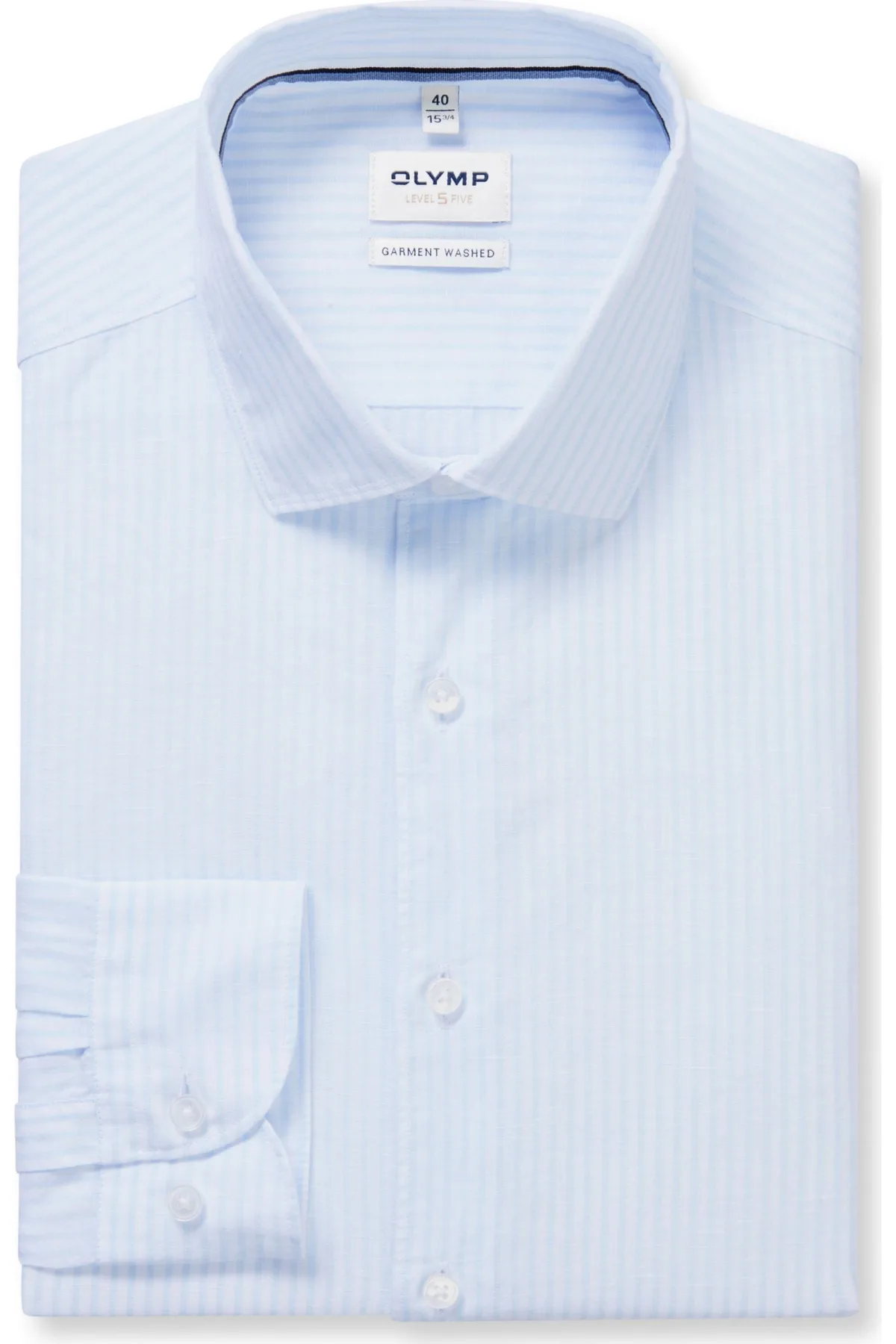 - Bij Overhemden.com kun je OLYMP Level Five Garment Washed Linnen Overhemd lichtblauw, Gestreept kopen voor slechts €84,95 , dat is 16% goedkoper dan bij Bol (€100,90).