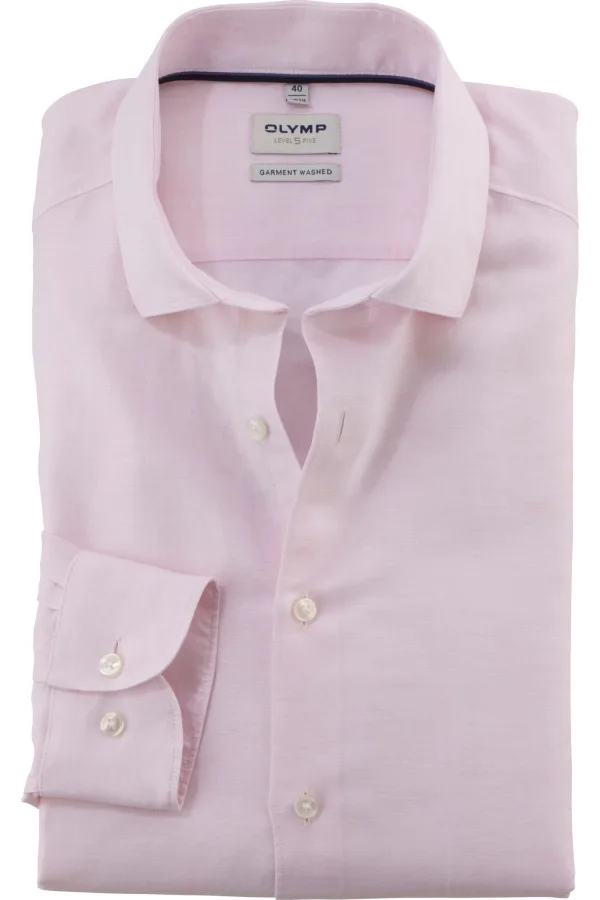 - Bij Overhemden.com kun je OLYMP Level Five Garment Washed Linnen Overhemd roos, Effen kopen voor slechts €78,95