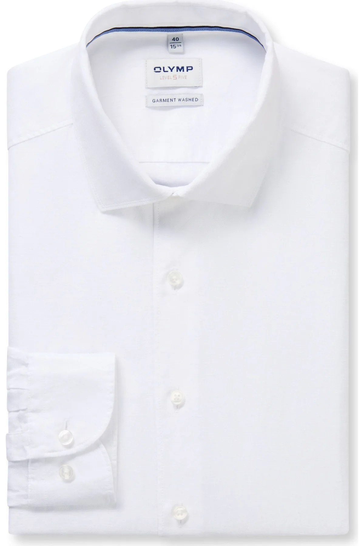 - Bij Overhemden.com kun je OLYMP Level Five Garment Washed Linnen Overhemd wit, Faux-uni kopen voor slechts €89,95 , dat is 11% goedkoper dan bij Bol (€100,90).