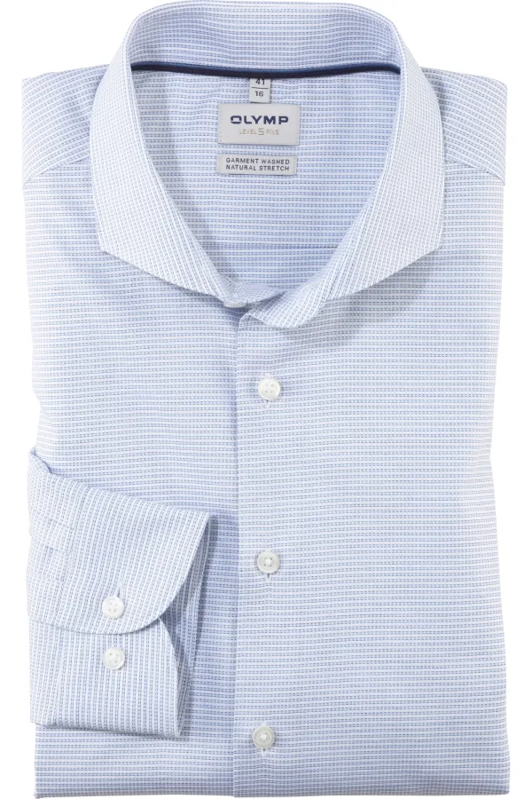 - Bij Overhemden.com kun je OLYMP Level Five Garment Washed Overhemd blauw, Faux-uni kopen voor slechts €84,95